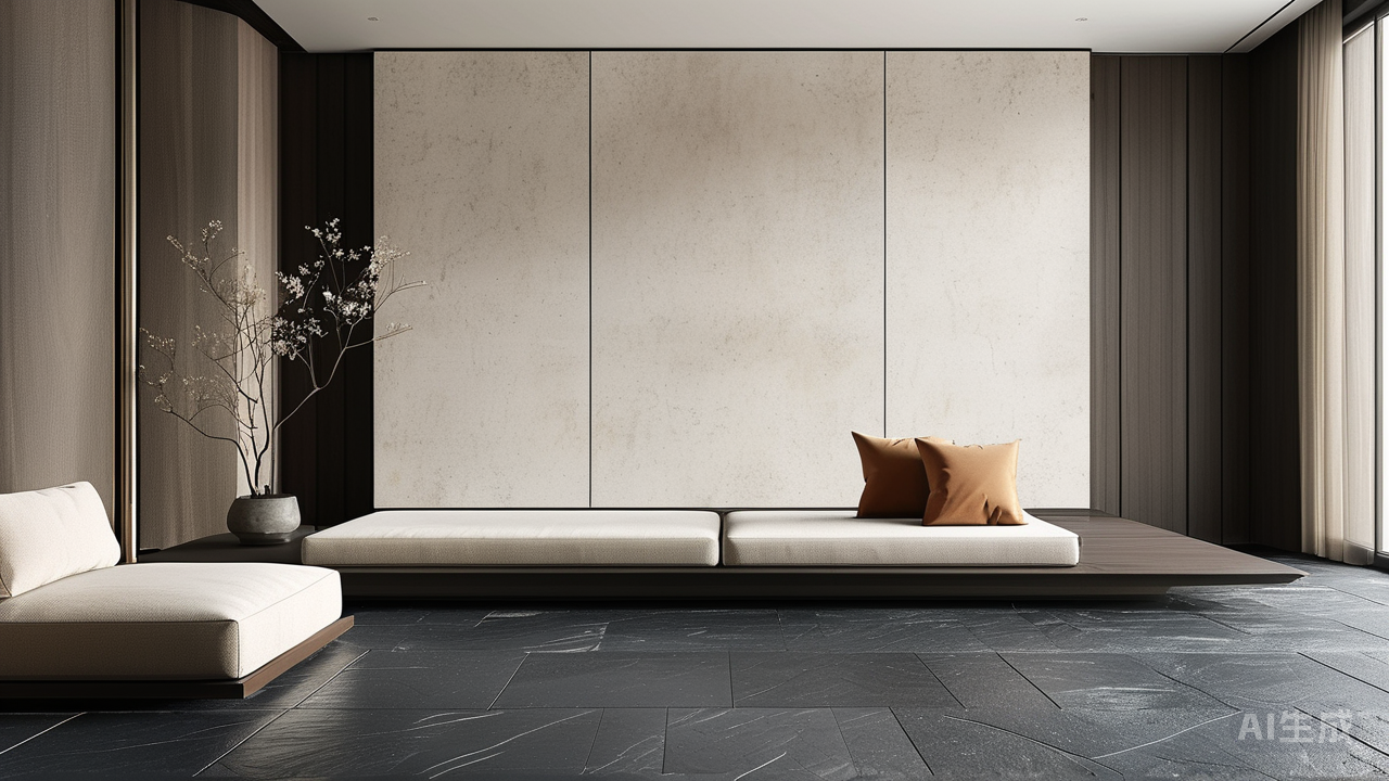 色彩明度,平衡是关键。 深浅差异制造空间层次,但需拿捏分寸。最不易失手的秘诀是:地面选择比墙面略深一度的色彩,如同大地沉稳托起四壁。若追求大胆对比,务必小面积尝试,确保视觉重心稳定,避免头重脚轻的失衡感。 纹理博弈,主次需分明。 当墙面已铺展繁复华丽的花纹,地面就该收敛锋芒,选择低调的纯色或细微肌理。反之亦然。若两者皆不甘平淡,纹理风格也需血脉相连——同属自然石纹,或共拥几何秩序,避免视觉元素混战厮杀,令人眼花缭乱。